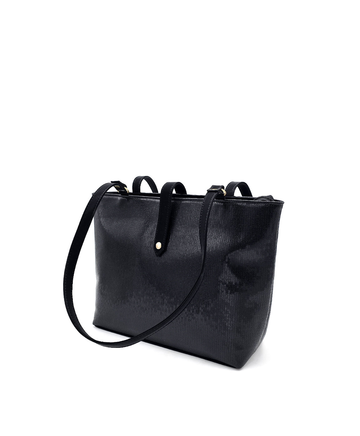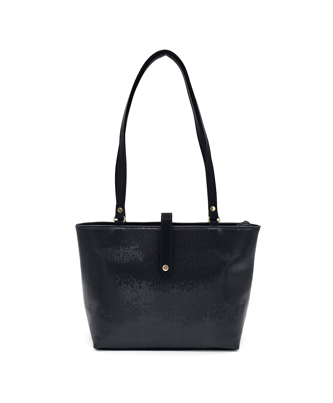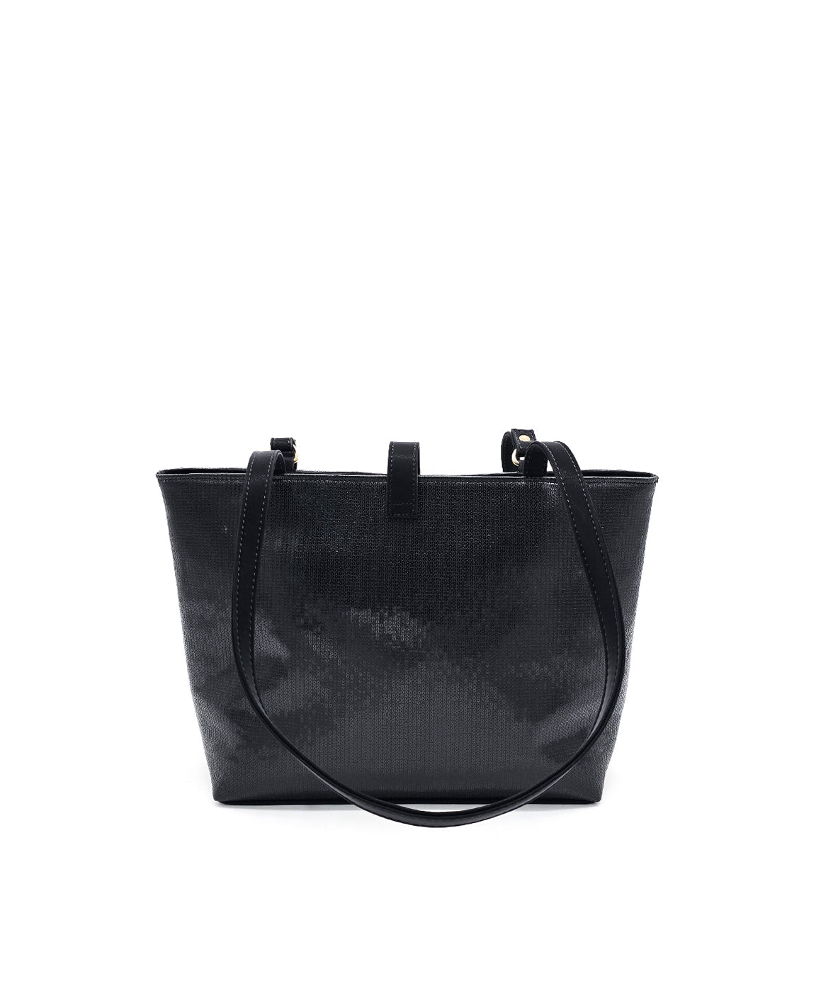 This tote bag presents a structured rectangular silhouette, designed for both elegance and practicality. It's elongated dual straps offer comfortable wear, while a central tab with a metallic accent adds a refined touch. Minimalist in detailing, it balances everyday functionality with polished sophistication.
