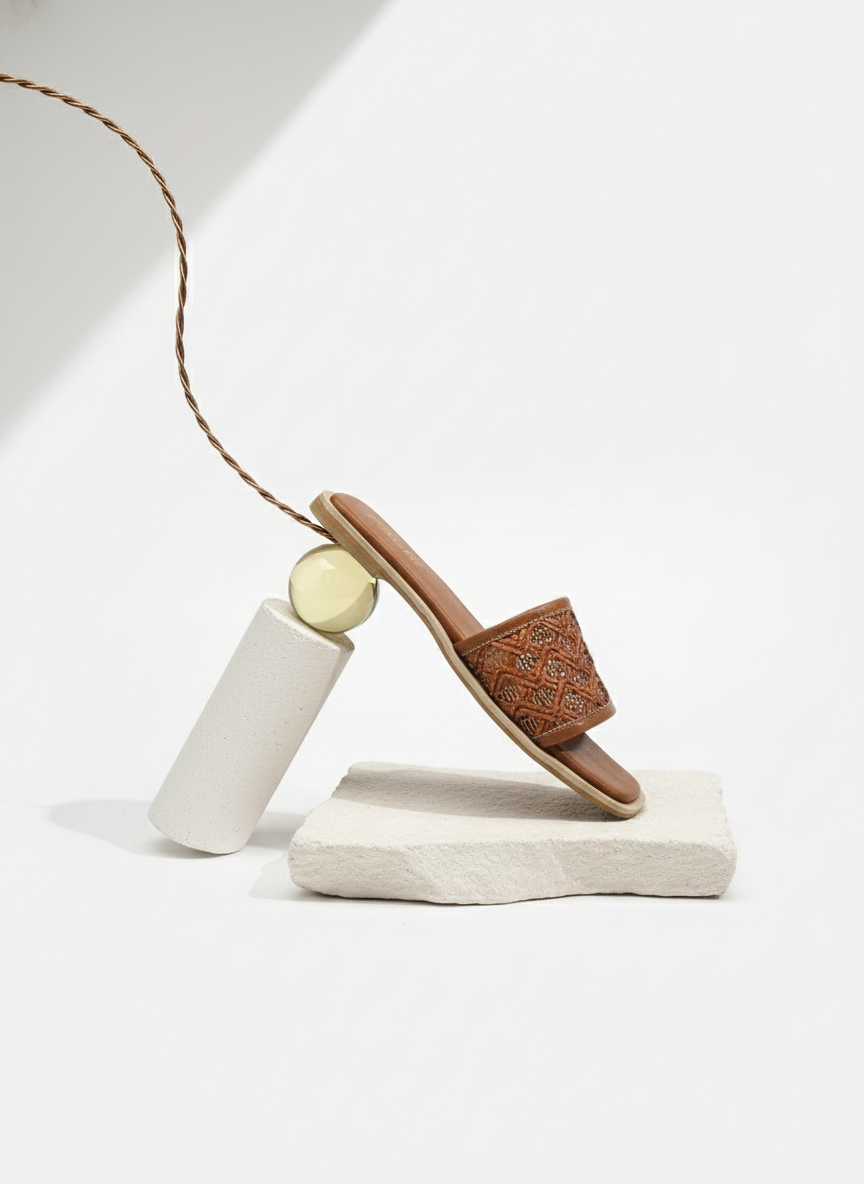 Introducing our Terra Weave slides, a beautiful blend of rich earthy tones and artisanal detail. The intricately woven upper adds depth and texture, while the cushioned sole keeps every step soft and comfortable.