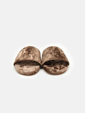 Designed with a richly-textured upper and a soft matching velvet footbed, these slides bring a lush feel under every step. Perfect for cozy evenings, festive gatherings, or elevating your daily wardrobe with a touch of opulence.